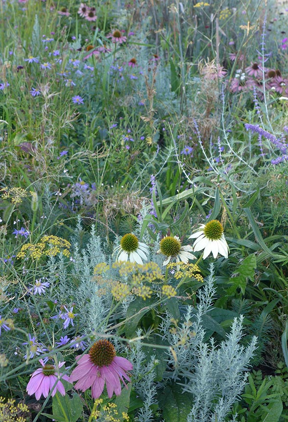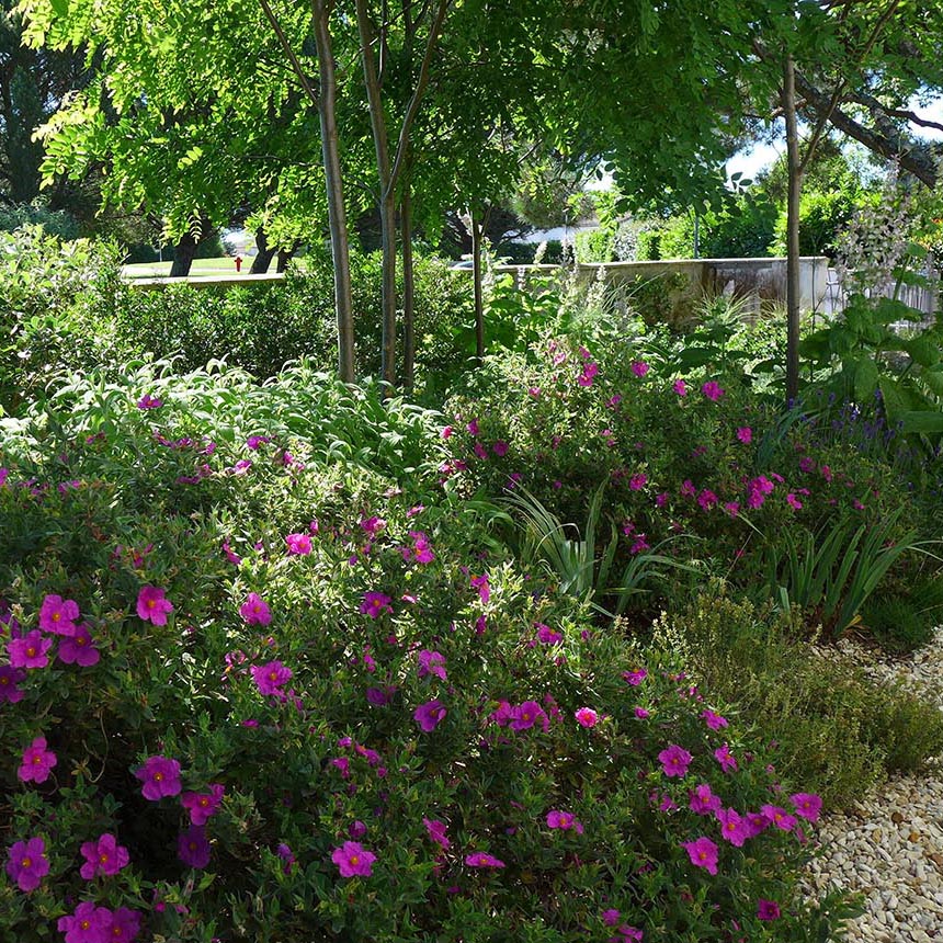 L'utilisation d'une trame végétale restreinte nécessite une observation pointu sur les tonalités et textures des feuillages autant que les fleurs. Un rhythme de plantation et des couleurs chromatiques restreintes sont des thèmes recurrents exposés dans ces images.